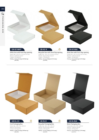 White Box with front flap opening Recycled Box with front flap opening Black Box with front flap opening